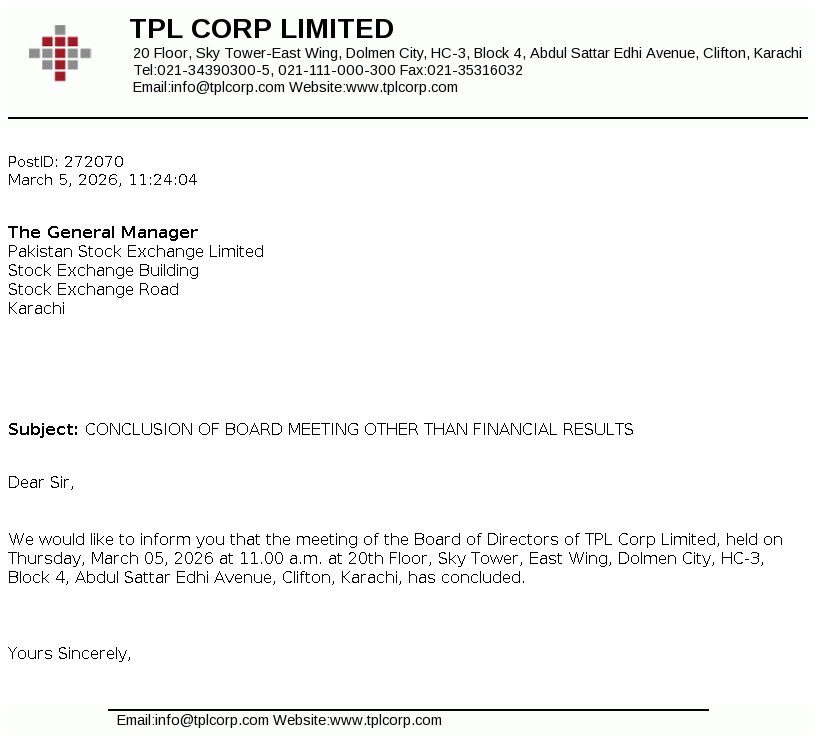CONCLUSION OF BOARD MEETING OTHER THAN FINANCIAL