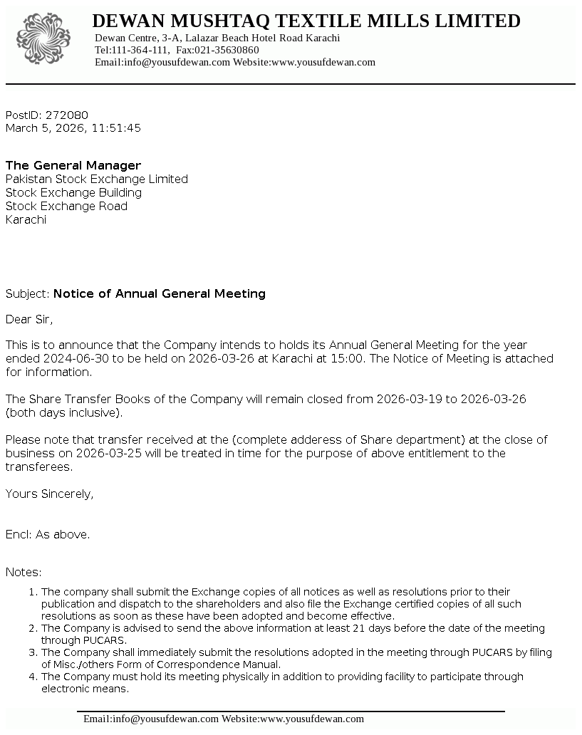 Download PDF View ImageDewan Mushtaq Textile Mills Limited