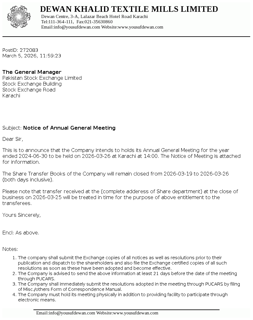 Dewan Khalid Textile Mills Limited