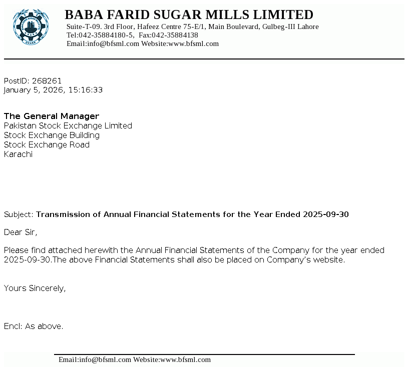 View ImageBAFS Transmission of Annual Report