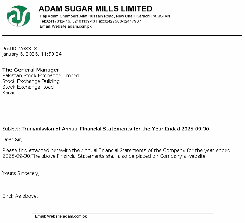 Adam Sugar Mills Limited