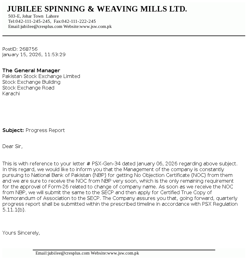 Download PDF View ImageJubilee Spinning and Weaving Mills Limited