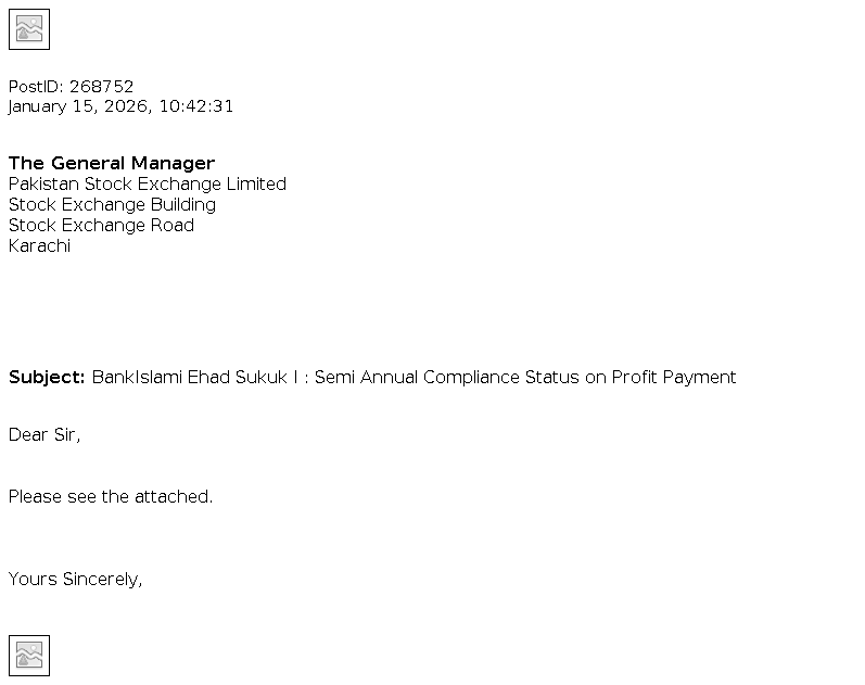 Download PDF View ImageBankIslami Ehad Sukuk I : Semi Annual Compliance Status on Profit Payment