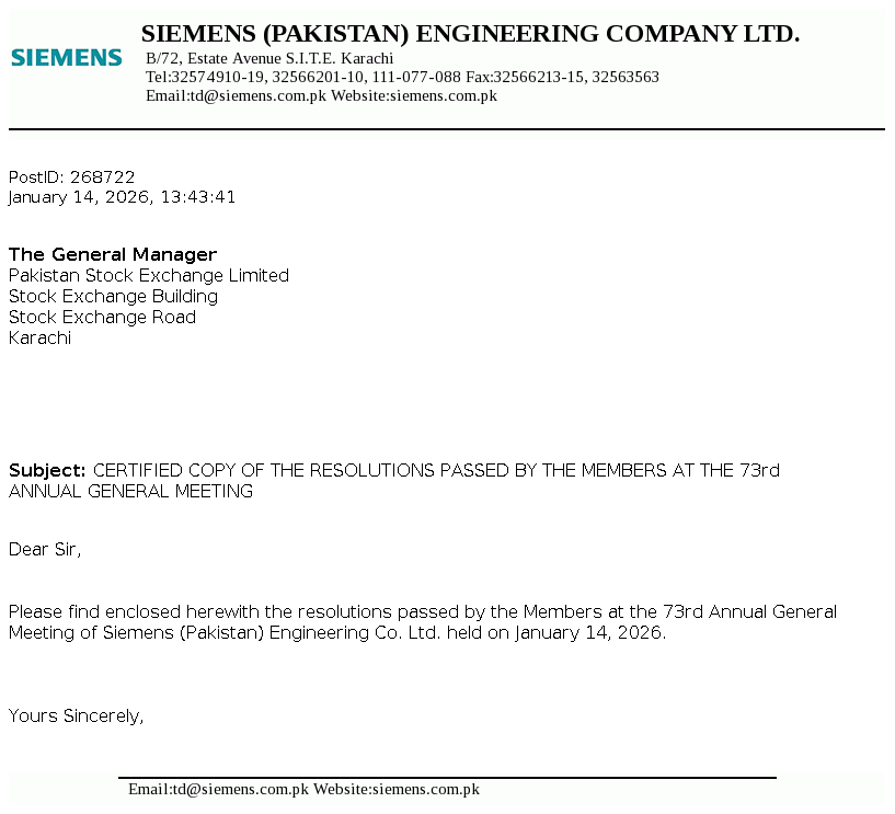 Siemens Pakistan Company Engineering Limited