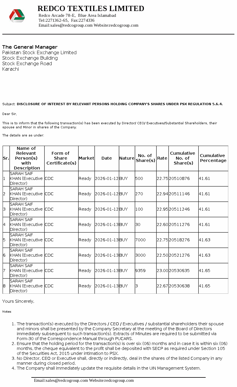 REDCO Interest Disclosure