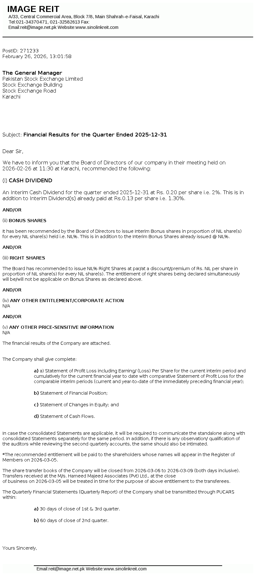 Financial results for Q2 ended December 31, 2025