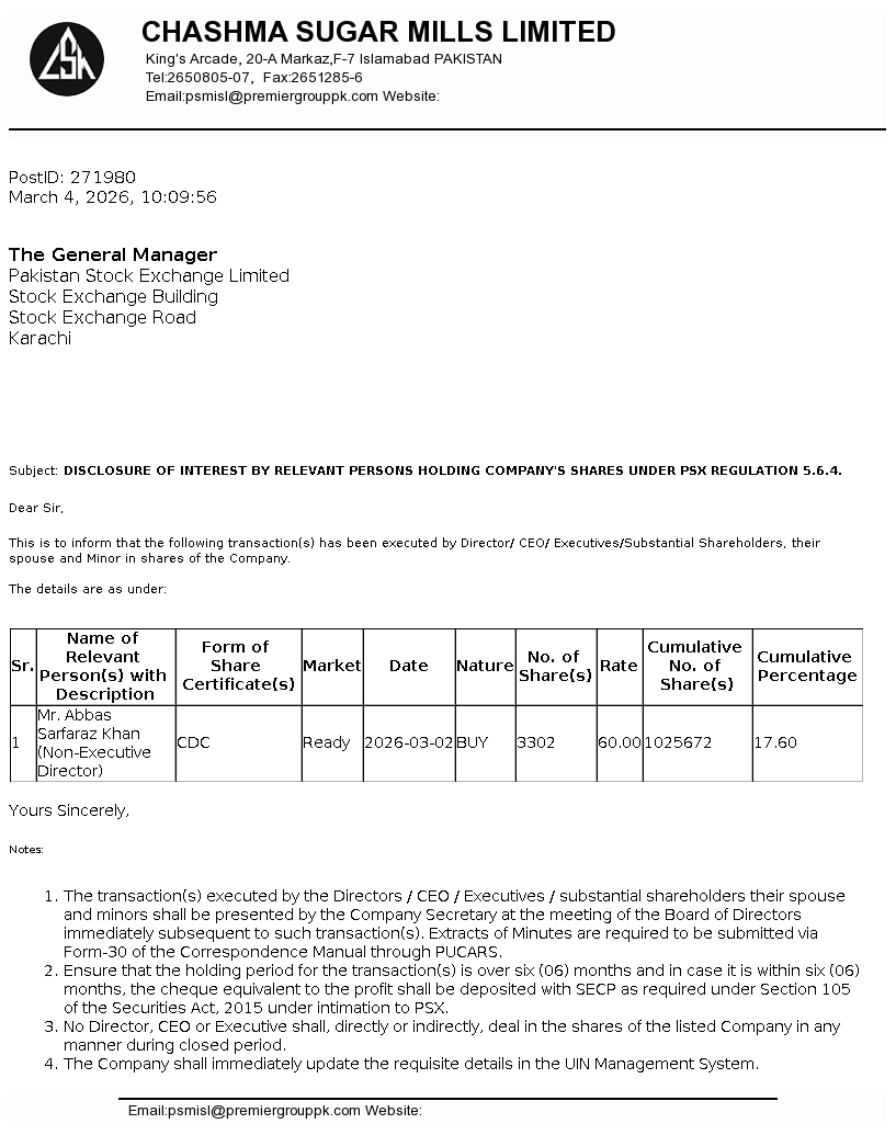 Chashma Sugar Mills Limited