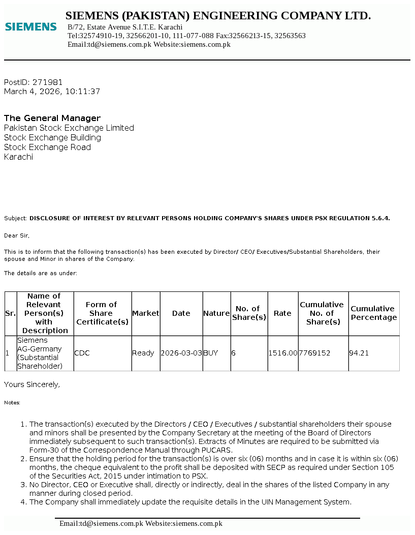 Transaction in Shares