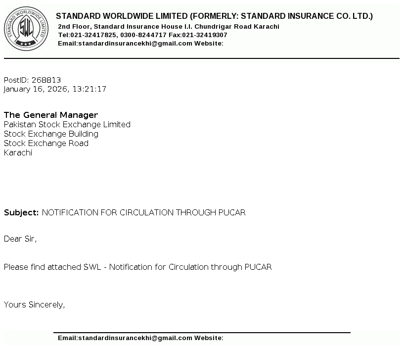 Shares of Standard Worldwide with CDC now Eligible for Book Entry