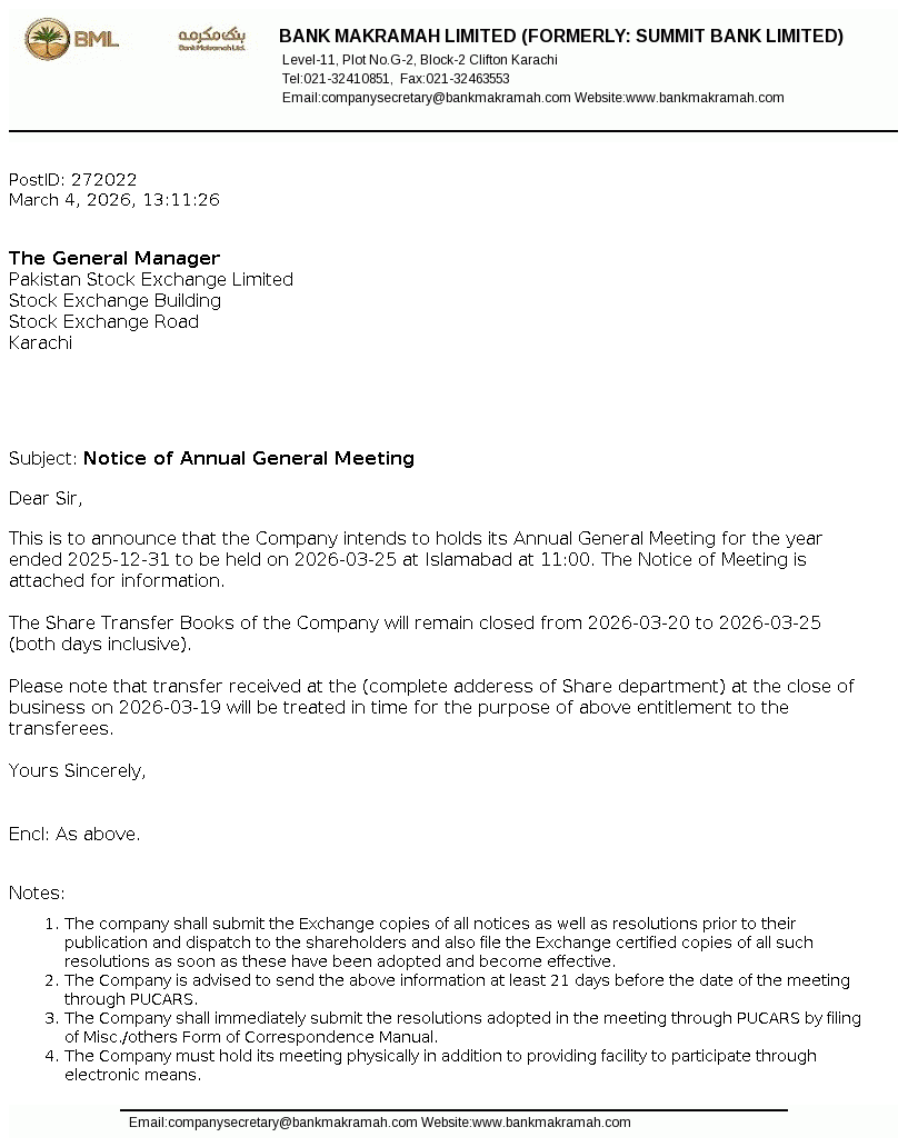 BML Annual General Meeting
