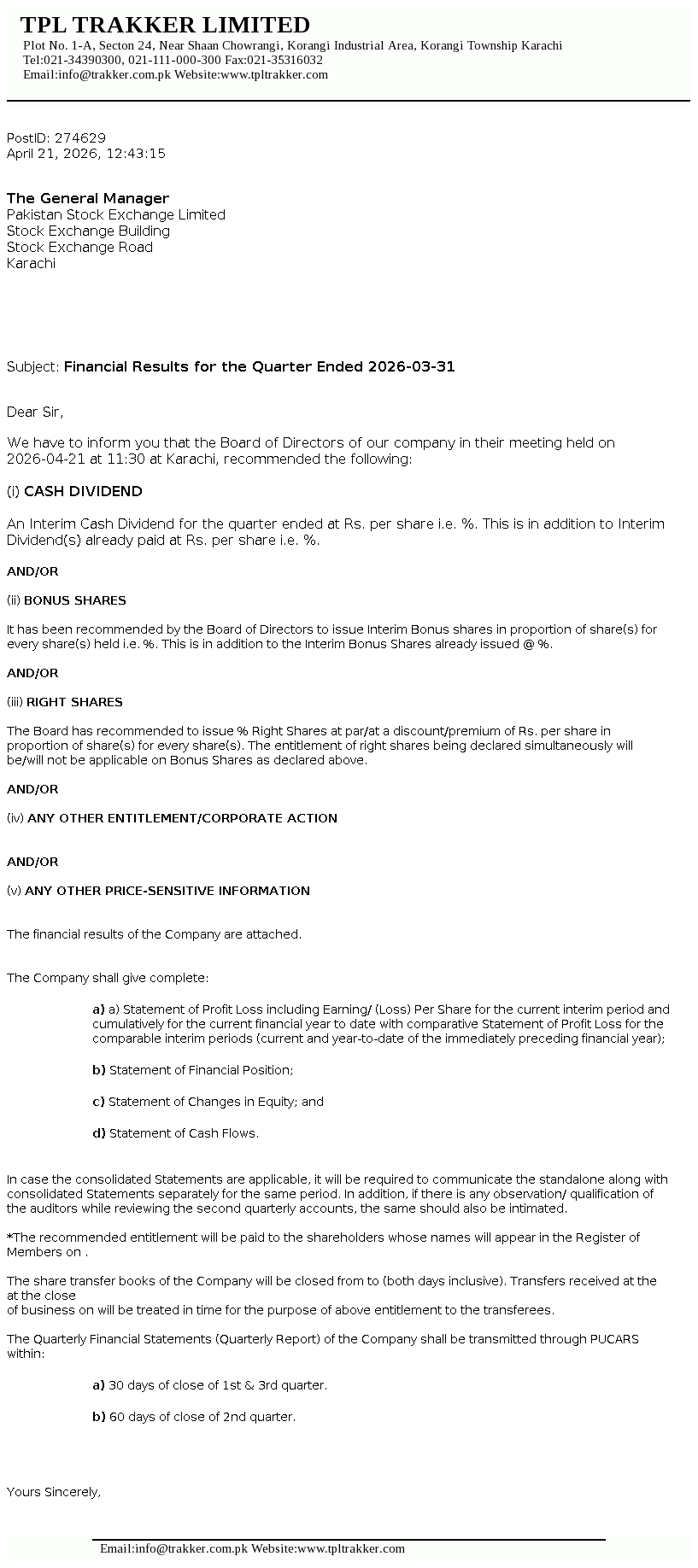 TPLT Financial Results Updated