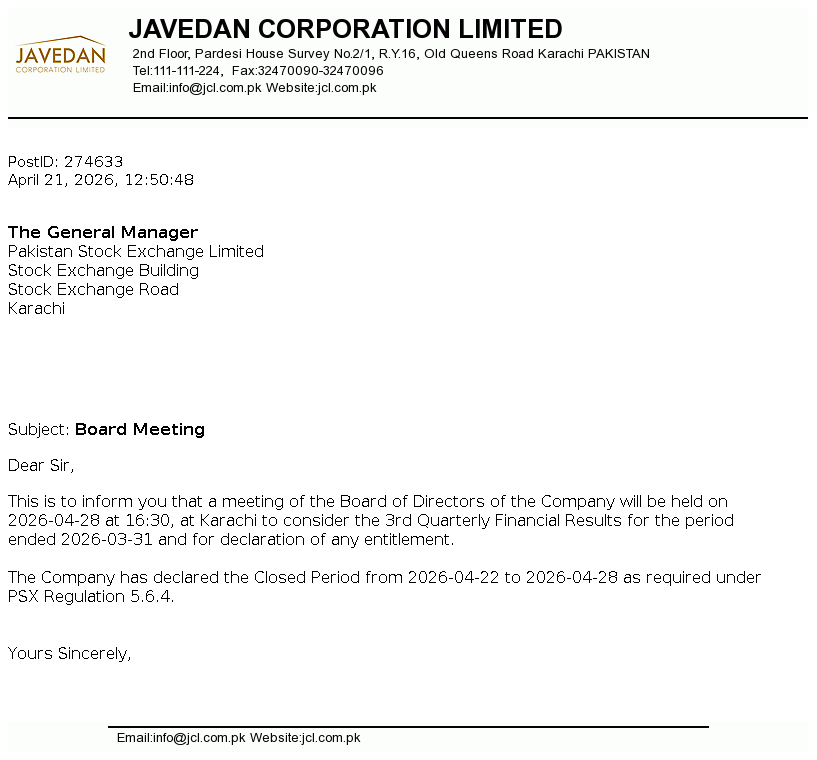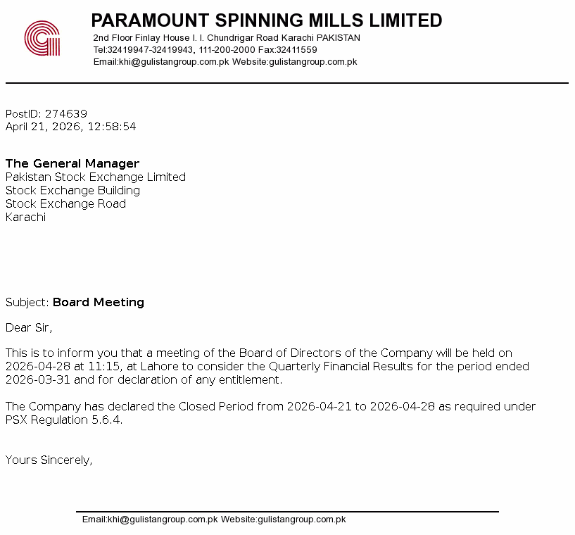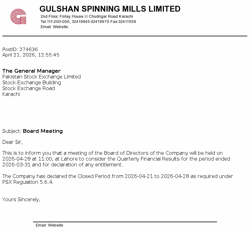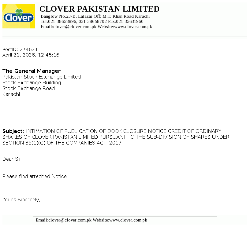 INTIMATION OF PUBLICATION OF BOOK CLOSURE NOTICE CREDIT OF ORDINARY SHARES OF CLOVER PAKISTAN LIMITED PURSUANT TO THE SUB-DIVISION OF SHARES UNDER SECTION 85(1)(C) OF THE COMPANIES ACT, 2017