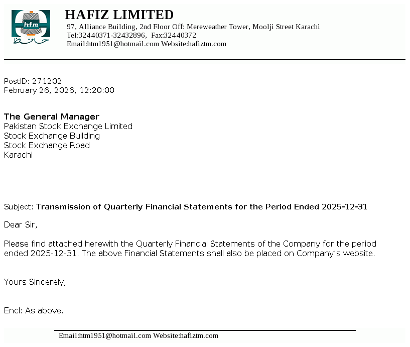 Transmission of Quarterly Report for the Period Ended December 31 2025 - Formatted