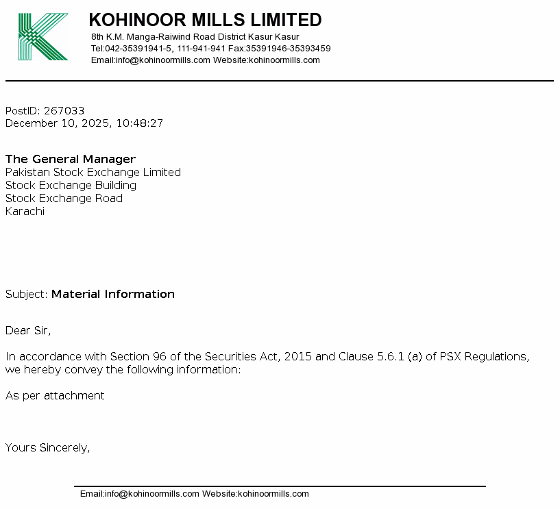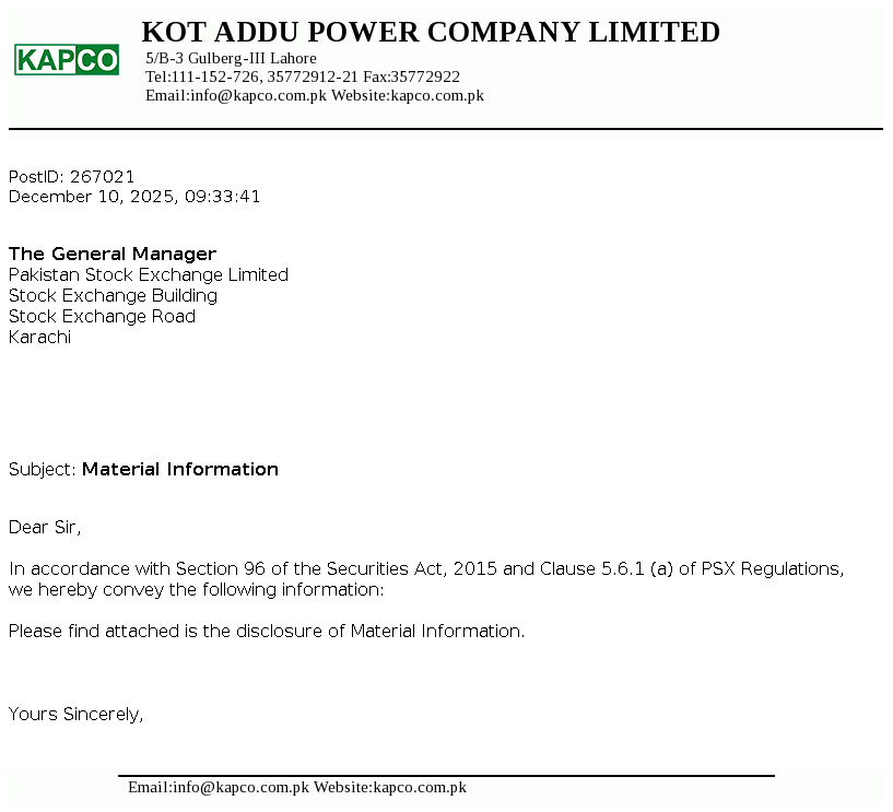 Material Information - Leave for Review Filed by the Company Against NEPRA's Decision